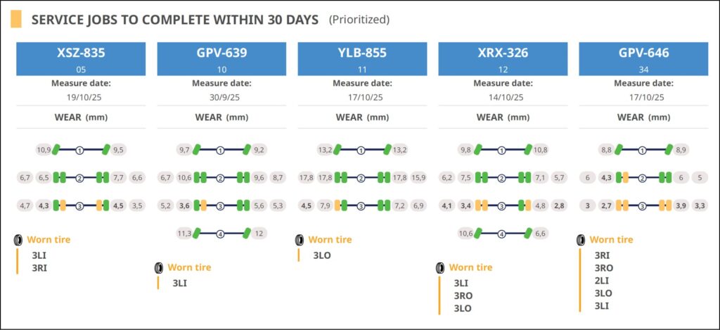 The new system enables Powder-Trans to optimise tyre use, reducing annual tyre failures by as much as 65%. Moreover, the precise monitoring allows each tyre to be safely used for longer – in practice, allowing an additional 1.5 mm of tread depth – resulting in an annual reduction of 106 tonnes of carbon dioxide emissions. Thanks to the automatic tyre pressure monitoring, a further 111 tonnes of CO2 emissions can be avoided each year. Fuel savings are estimated at around 1%.